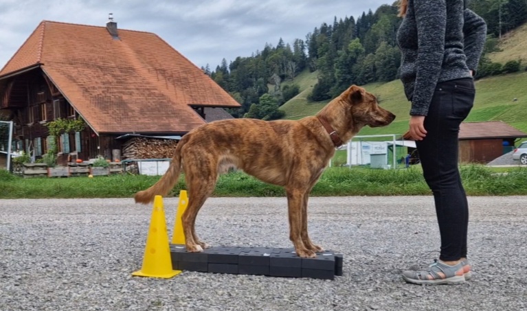 Nicht zuletzt beziehe ich den aktuellen Trainingsstand, des Hunde-Menschteam mit ein. Finde heraus, welche Übungen sie schon kennen und können, ob sie Anfänger oder Profis im Hundesport und Fitnesstraining sind. Dabei ist das individuelle Level ebenso wichtig zu bedenken wie die kognitiven Fähigkeiten des Hundes und die Erfahrungen des Besitzers, auch mit anderen Hunden und Trainingsarten. Es bringt nichts, 10 Übungen zu machen, wenn der Hund schon nach der zweiten Übung im Kopf „durch“ [=nicht mehr aufnahmefähig] ist, jedoch körperlich noch wesentlich mehr könnte. Umgekehrt macht es Sinn, etwa indem man einem körperlich schwächeren Hund, welcher im Kopf aufmerksam bleibt und anwesend ist, kognitiv komplexere Übungen ausführen lässt, welche nicht zu viel Muskelkraft benötigen. Zu Guter Letzt darf auch der Faktor Mensch nicht unterschätzt werden, denn auch das Herrchen oder Frauchen müssen in der Lage sein, die Übungen zu verstehen, richtig auszuführen und gedanklich „an Board“ zu bleiben.
